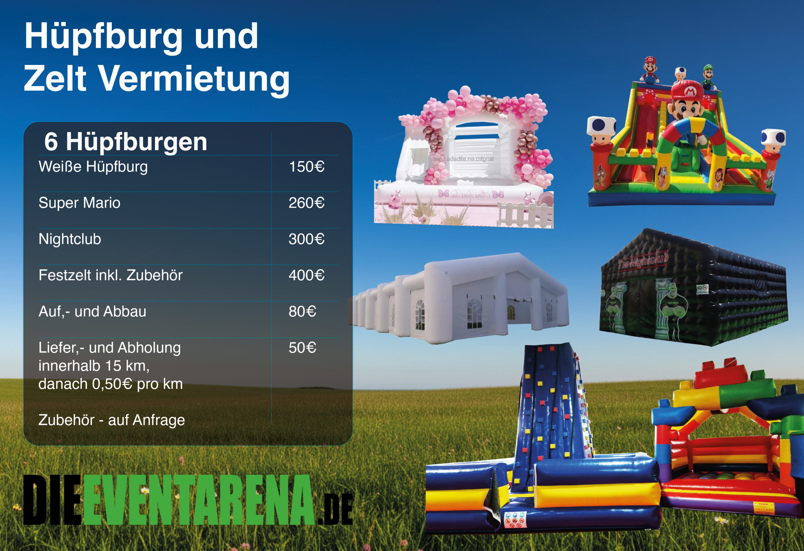 6Hüpfburgen – Weiße Hüpfburg – 150 € / Super Mario – 260 €